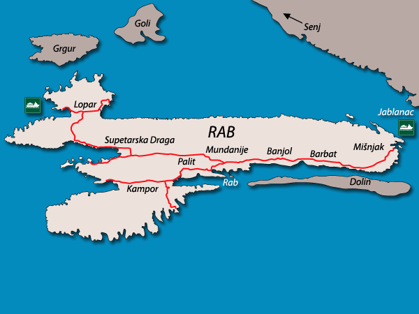 From the Stinica ferry dock on the mainland from where you can reach the Mišnjak dock on the south side of the island of Rab. A service runs here all year round, the trip takes 15 minutes, with departures every one or two hours out of season, and continually in the summer months